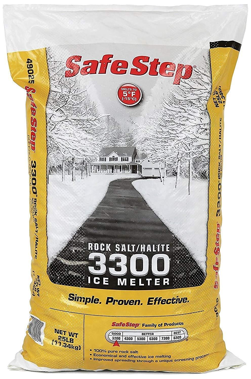 Safe Step Rock Salt/Halite Standard 3300 Ice Melter Non-Corrosive Safe for Concrete Sidewalks, Driveway Pavement- 25 Pound Bag