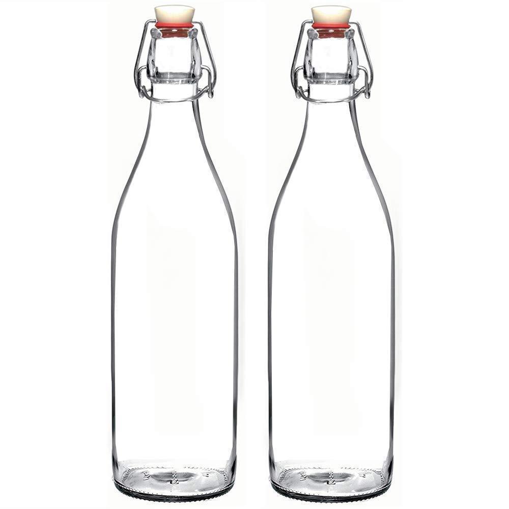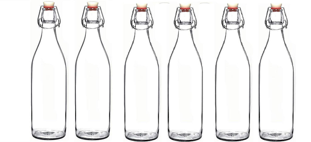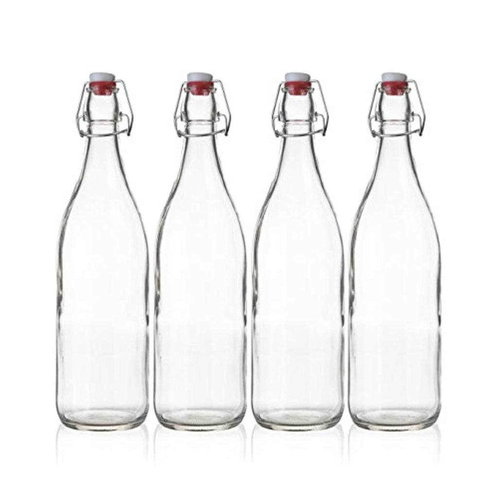 Seacoast Clear Glass Bottle with Swing Top Stopper, 33.75 Oz Round Pack of 4
