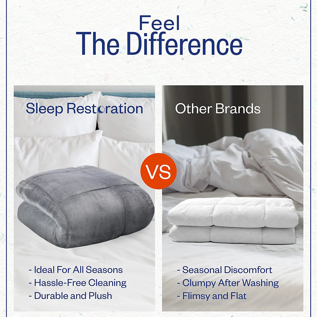 • EXPERT CRAFTSMANSHIP & DESIGN - Sleep in extreme comfort with the Sleep Restoration luxurious micromink comforter. This over-sized comforter is a masterpiece crafted with durable hems and precise stitching giving this product excellent longevity.
