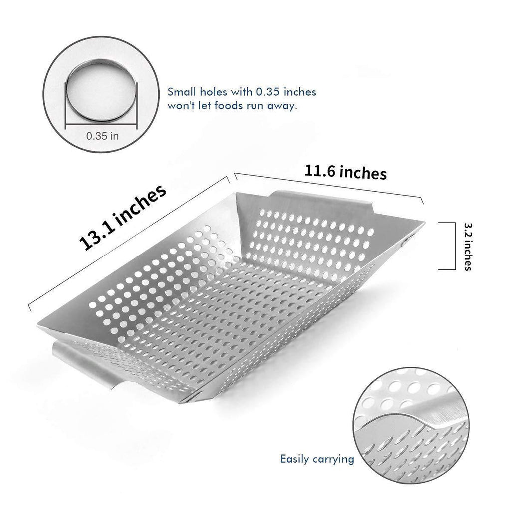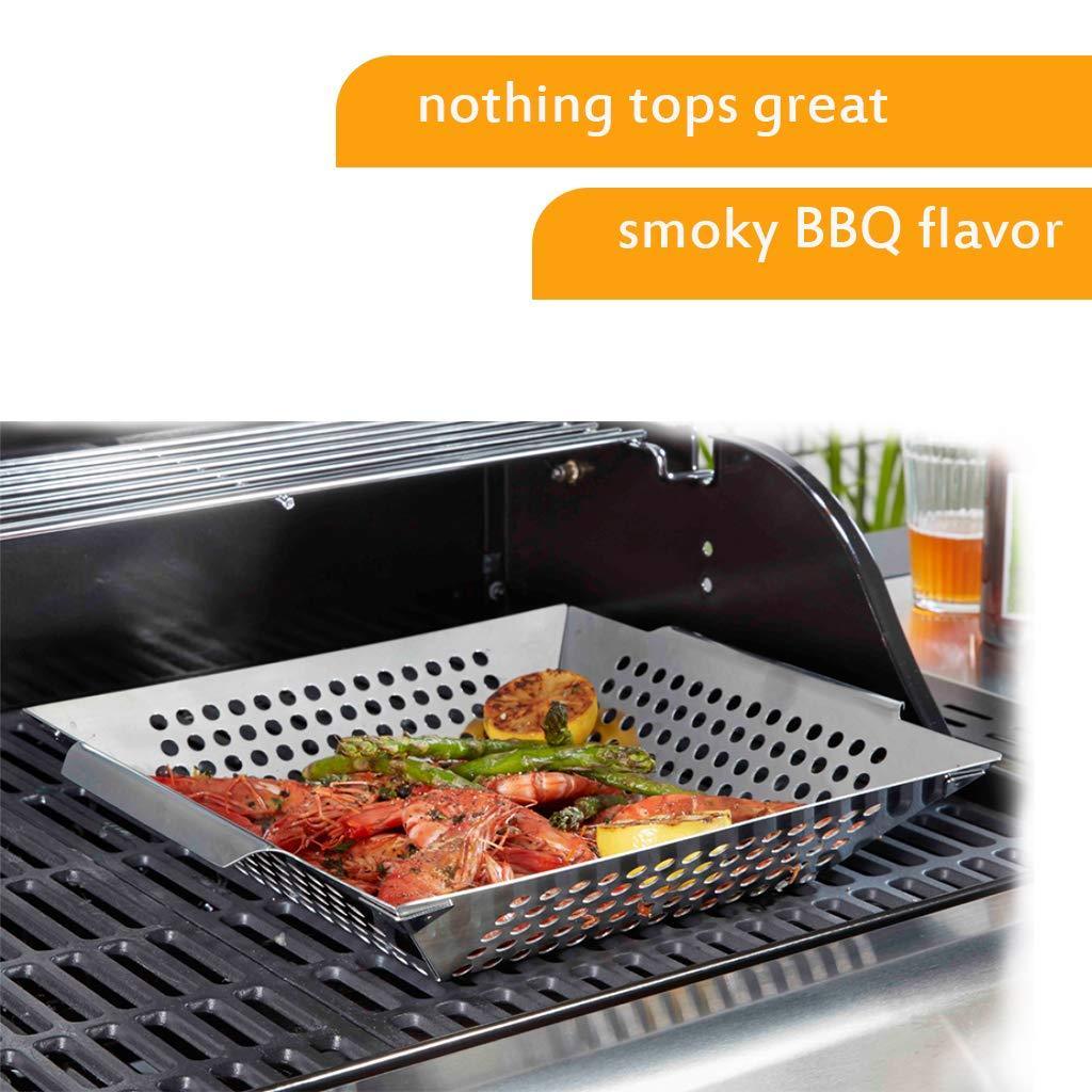 SMAID Vegetable Grill Basket - Large Stainless Steel Veg Grill Basket Works On Gas Wok Or Smoker-BBQ Accessories Stir Fry Grilling Fish, Seafood, Kabob, Pizza, Veggies & Fruit-Outdoor Campfire Use