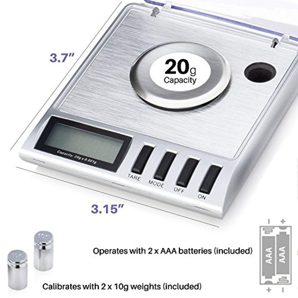 • ACCURATE- Utilizes high precision sensor system to get an accurate reading every time! This scale has a thousandth of a gram accuracy (0.001g) so it is extremely precise. This accuracy takes the guesswork out of measuring finer items, so you can just place the items on the scale and know that your reading is the most accurate it can be with this top of the line scale!