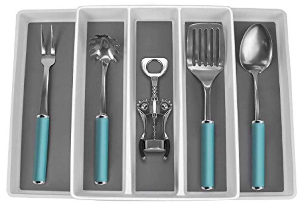 • UTENSIL FLATWARE DRAWER ORGANIZER (5 Sections) — Keeps your cutlery neatly arranged for storage and easy access within drawers— Features 5 sections, ideal for silverware, serving utensils, and various kitchen gadgets