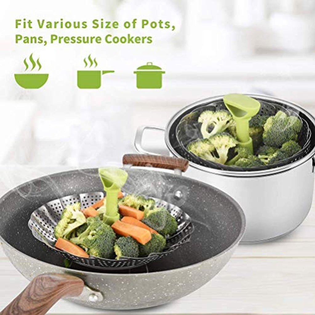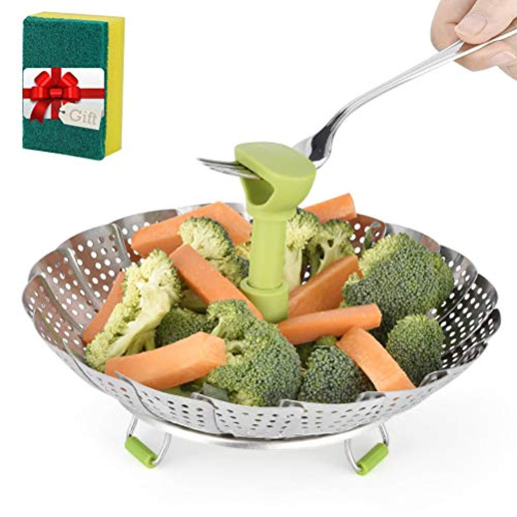 Stainless Steel Vegetable/Veggie Steamer Basket For Instant Cooking Pot With Handle And Legs, Foldable Food Container For Fish, Oyster, Crab, Seafood, Dumpling (5.1 Inch To 9 Inch, Dishwasher Safe)