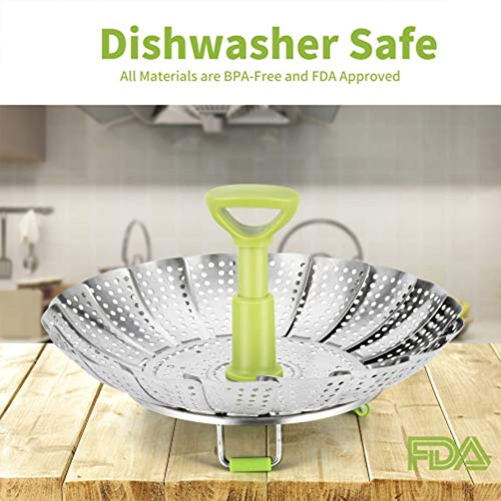 • DISHWASHER SAFE – This stainless-steel steamer basket is safe to be washed in a dishwasher. Before placing it into a dishwasher, simply open the ”wing bowl” to the maximum size, so that the dishwasher can wash the inside of it better. And remember to dry it up before storing.