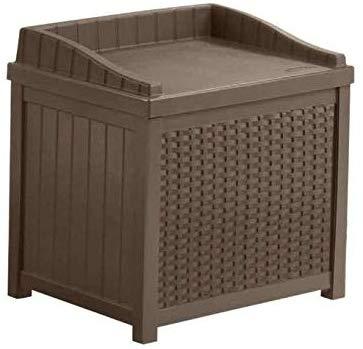 Suncast 22 Gallon Resin Storage Seat - Contemporary Indoor and Outdoor Bin Stores Tools, Toys, and Accessories - Mocha Wicker