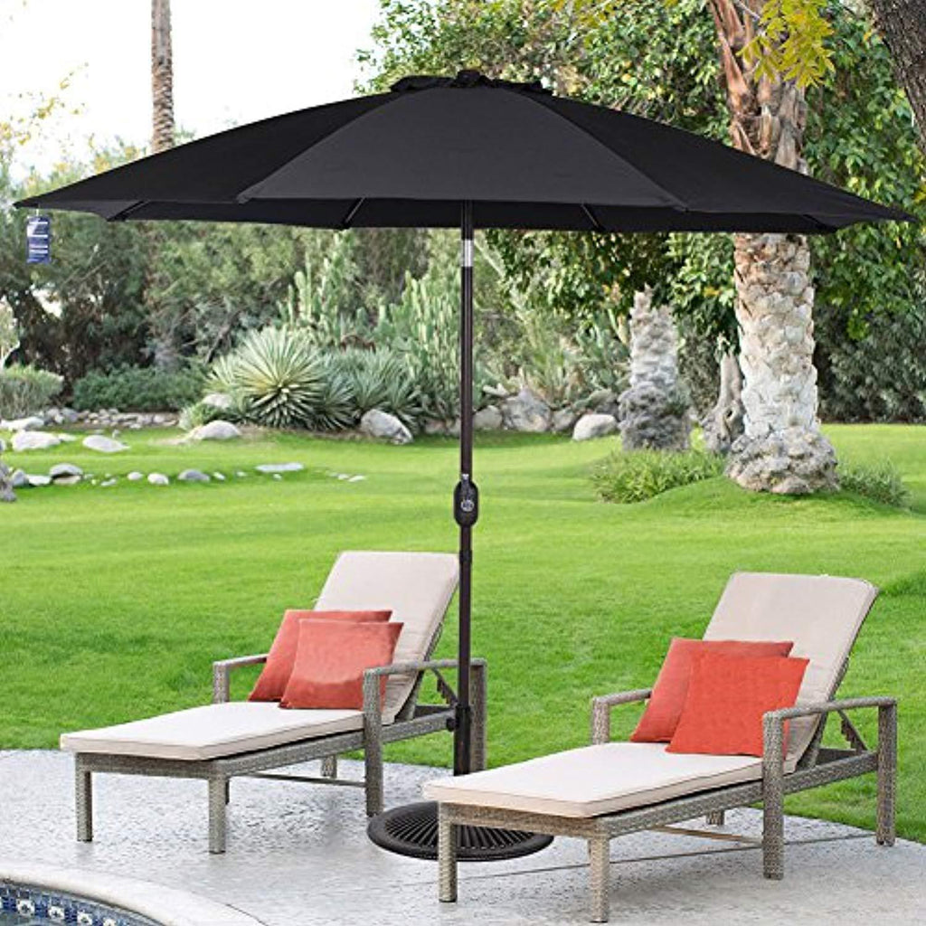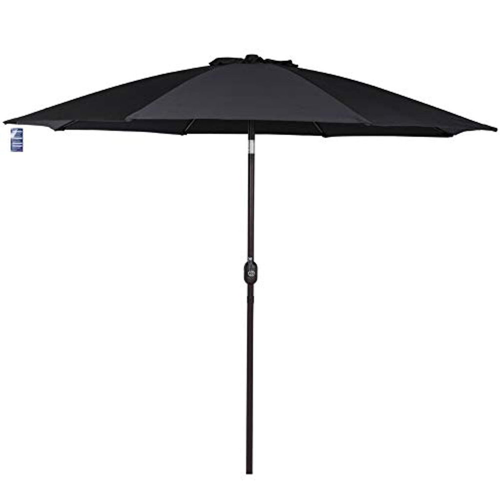 Sundale Outdoor 9 Feet Aluminum Market Umbrella Table Umbrella with Crank and Push Button Tilt for Patio, Garden, Deck, Backyard, Pool, 8 Fiberglass Ribs, 100% Polyester Canopy (Black)