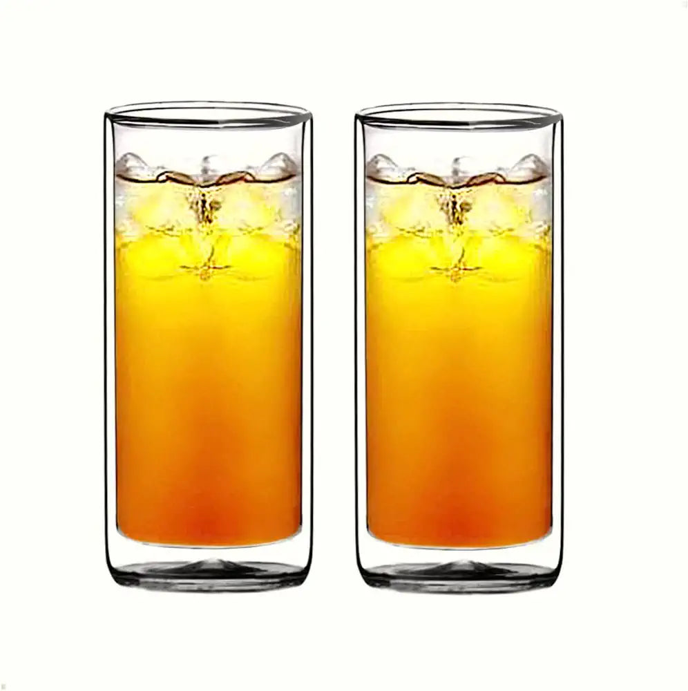 Sun's Tea Double Wall Insulated Glass Tumbler Drink Glasses, 16oz (450ml) Highball Glass Cups for Beer, Lemonade, Iced Tea, Tropical Drink, Cocktail, Smoothie, Mojito and Other Mixed Drinks, Set of 2 - Collins Style