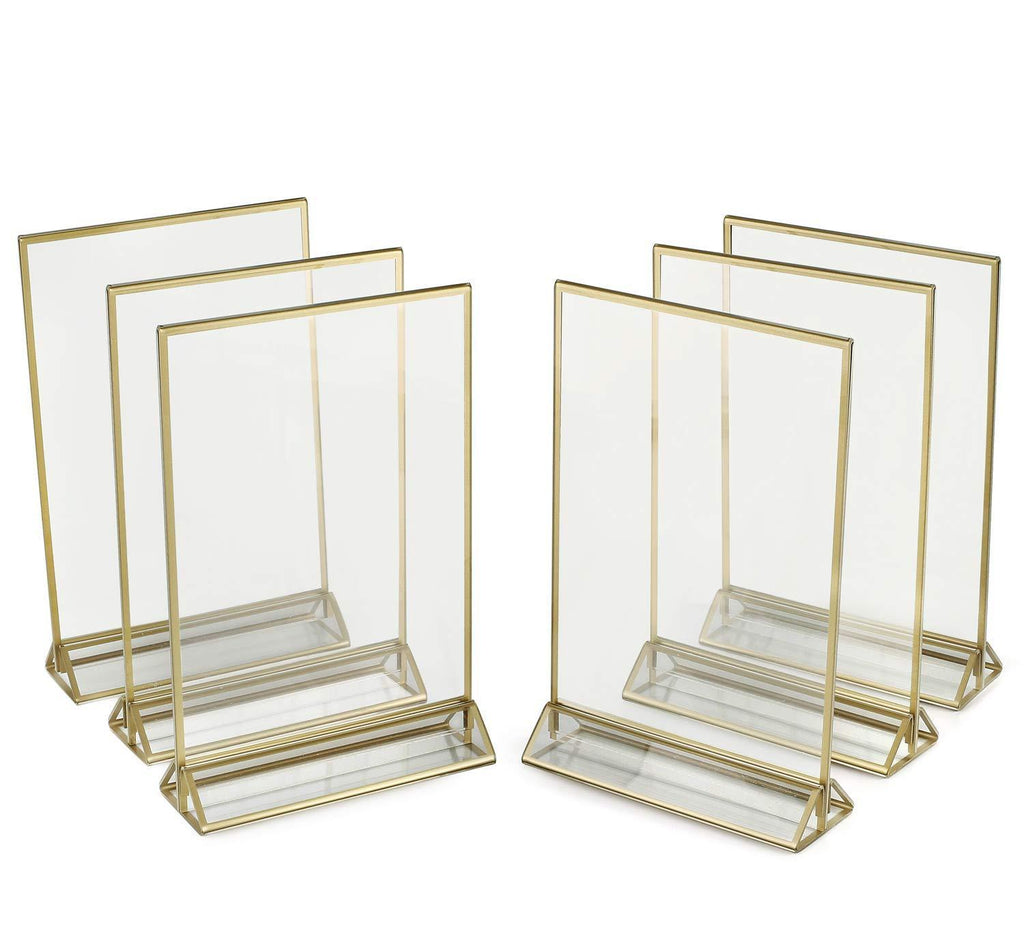 SUPER STAR QUALITY Clear Acrylic 2 Sided Frames With Gold Borders and Vertical Stand (Pack of 6) ) | Ideal for Wedding Table Number Holder, Double Sided Sign, Clear Photos, Menu Holders
