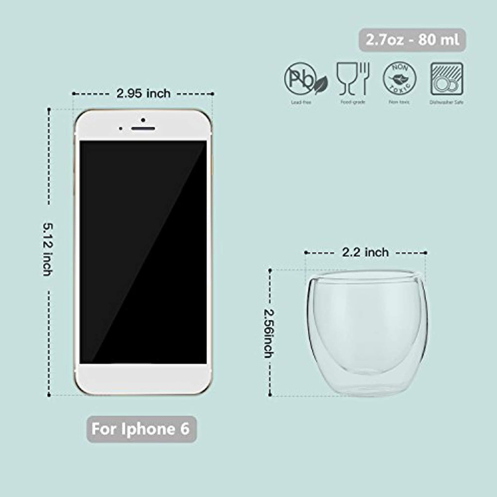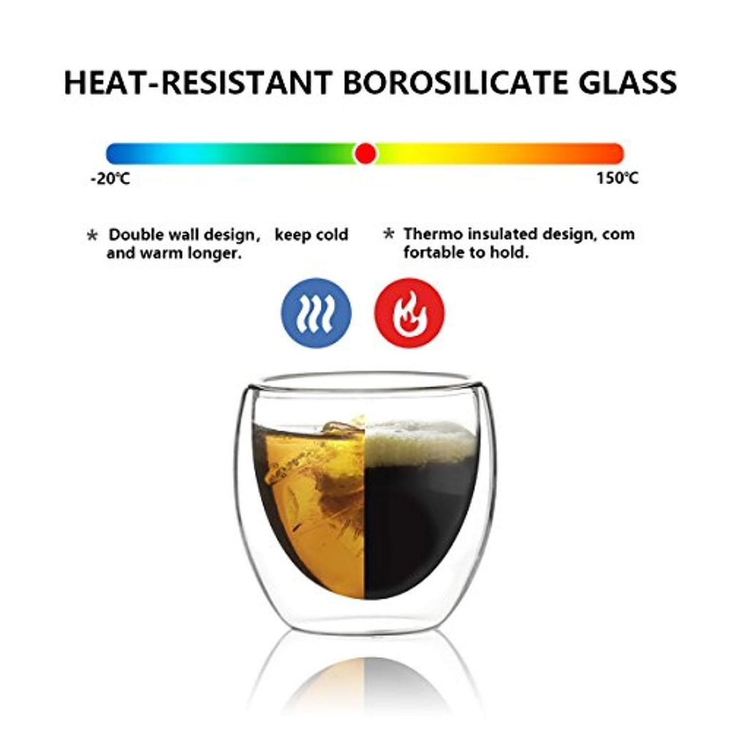 • ★ DOUBLE WALL DESIGN & INSULATION - Double wall thermo insulated espresso mugs design, never worry burn hand. And more, the glass coffee cup is keep coffee or beverage hotter and cooler than ceramics mug.