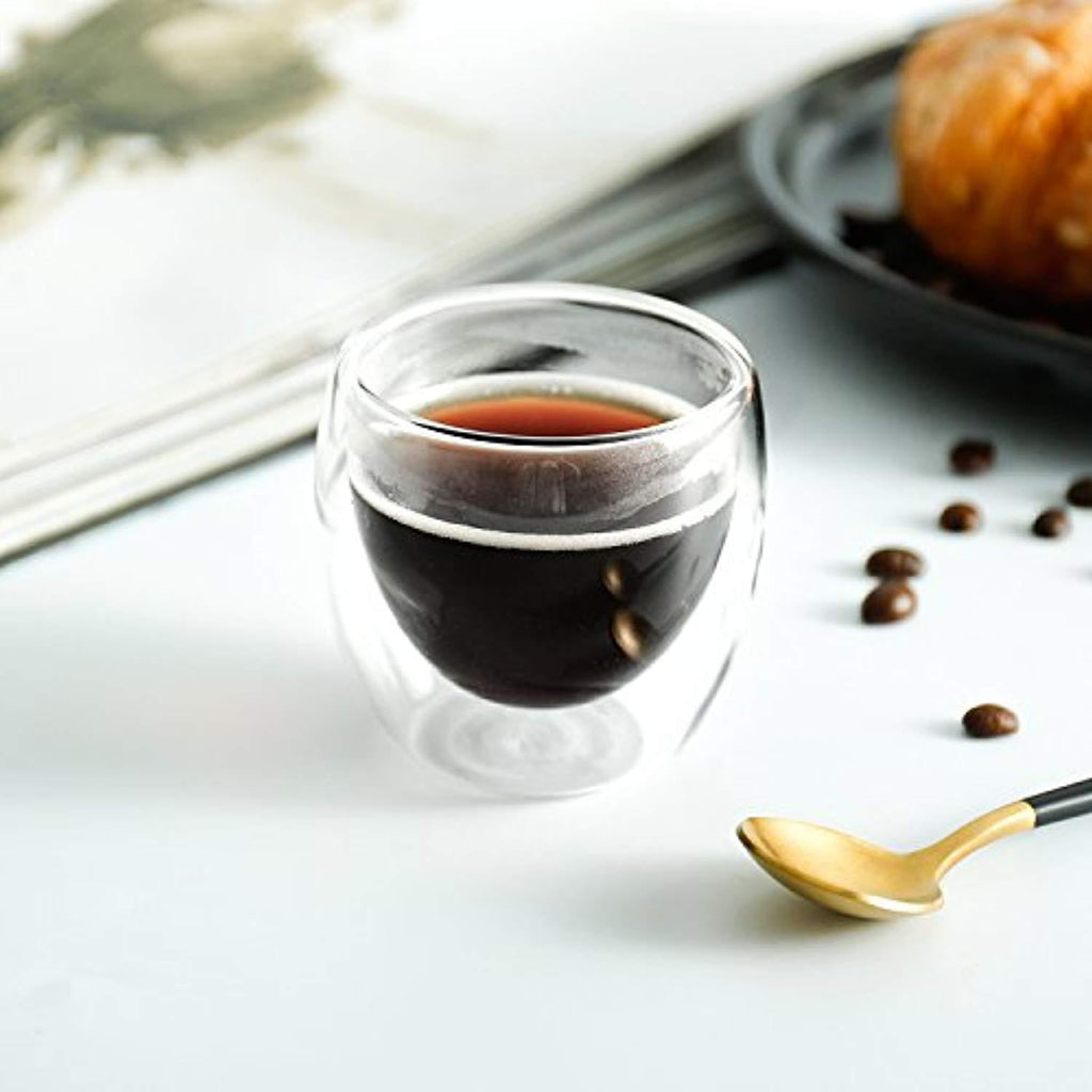 • ★ DISHWASHER FREEZER AND MICROWAVE SAFE - Espresso glasses mug it is easier to clean than plastic mug and safe in dishwasher. if you want to hot coffee you can reheat again in microwave, or you want drink cold beverage, it is also safe in freezer.