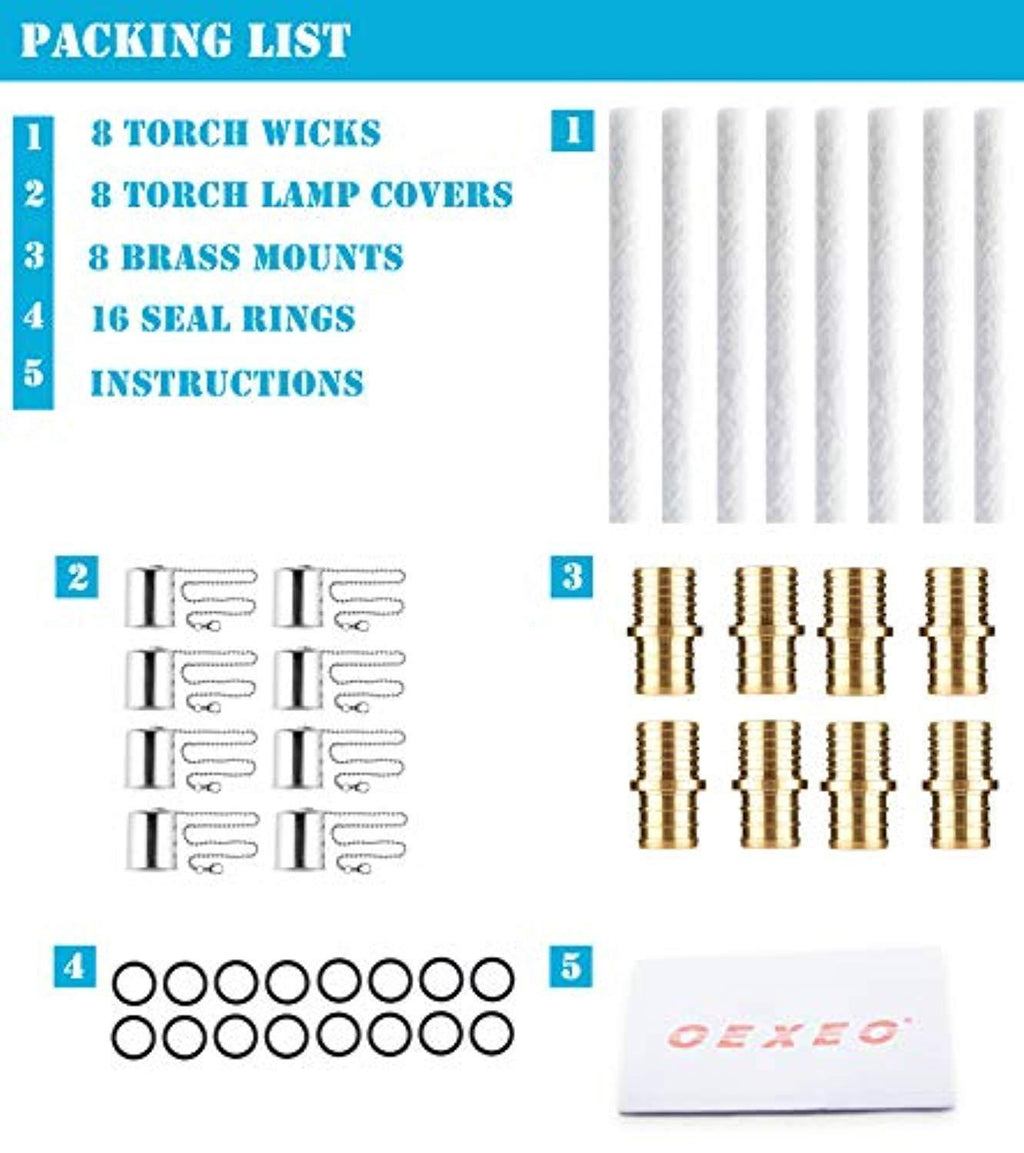 Tiki Torch Kit,Torch Wicks and Brass Wick Mount, Table Top Torch Lantern Kit 8 PCS(bottle not included)