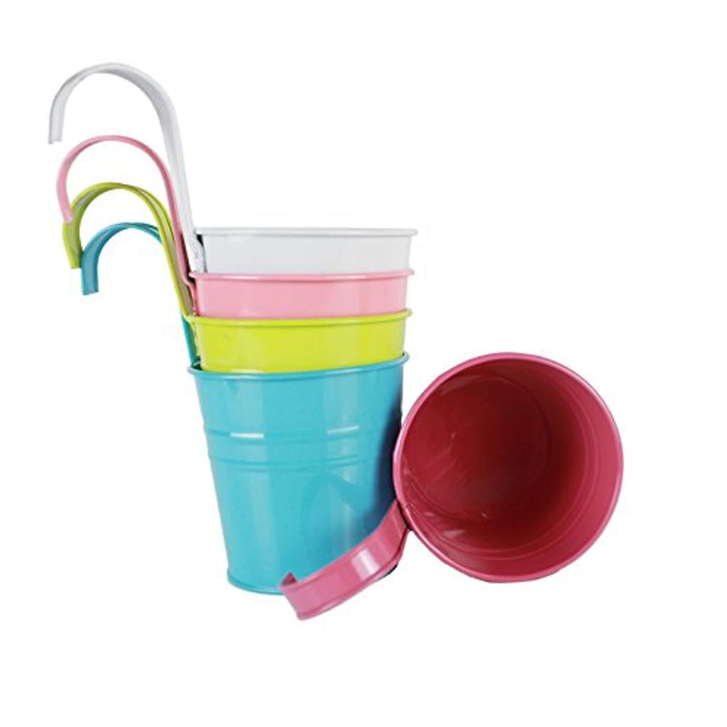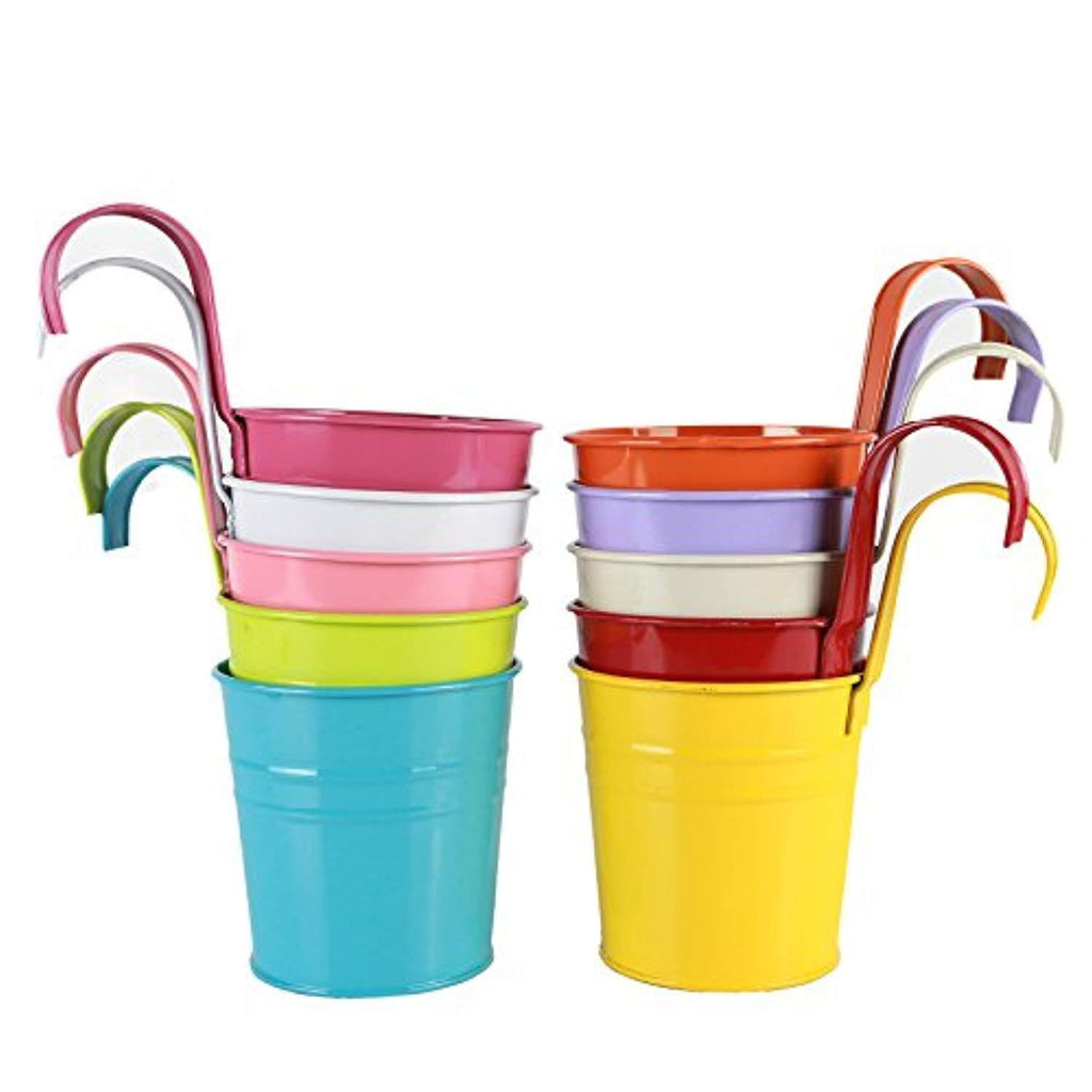 Truedays 4''-10 Pack Metal Iron Flower Pot Vase Wall Fence Hanging Balcony Garden Patio Planter Home Decor