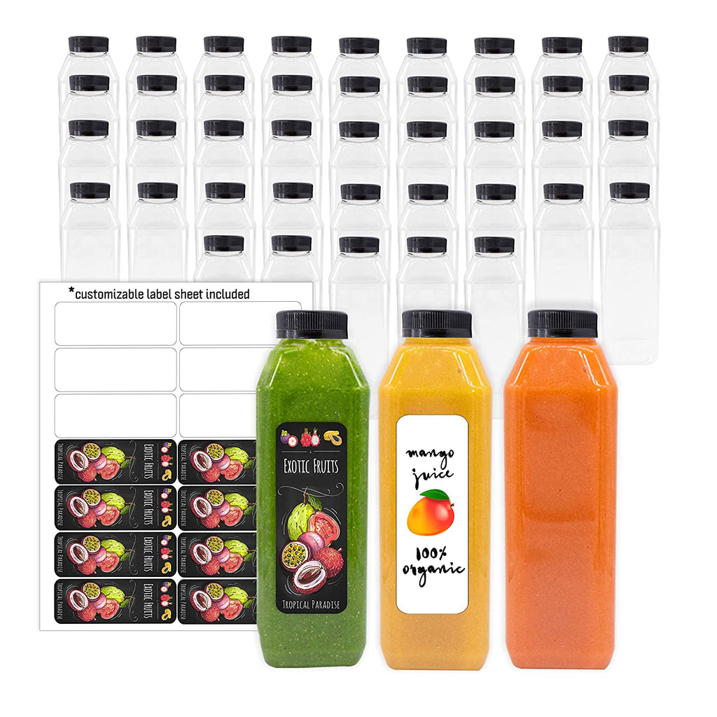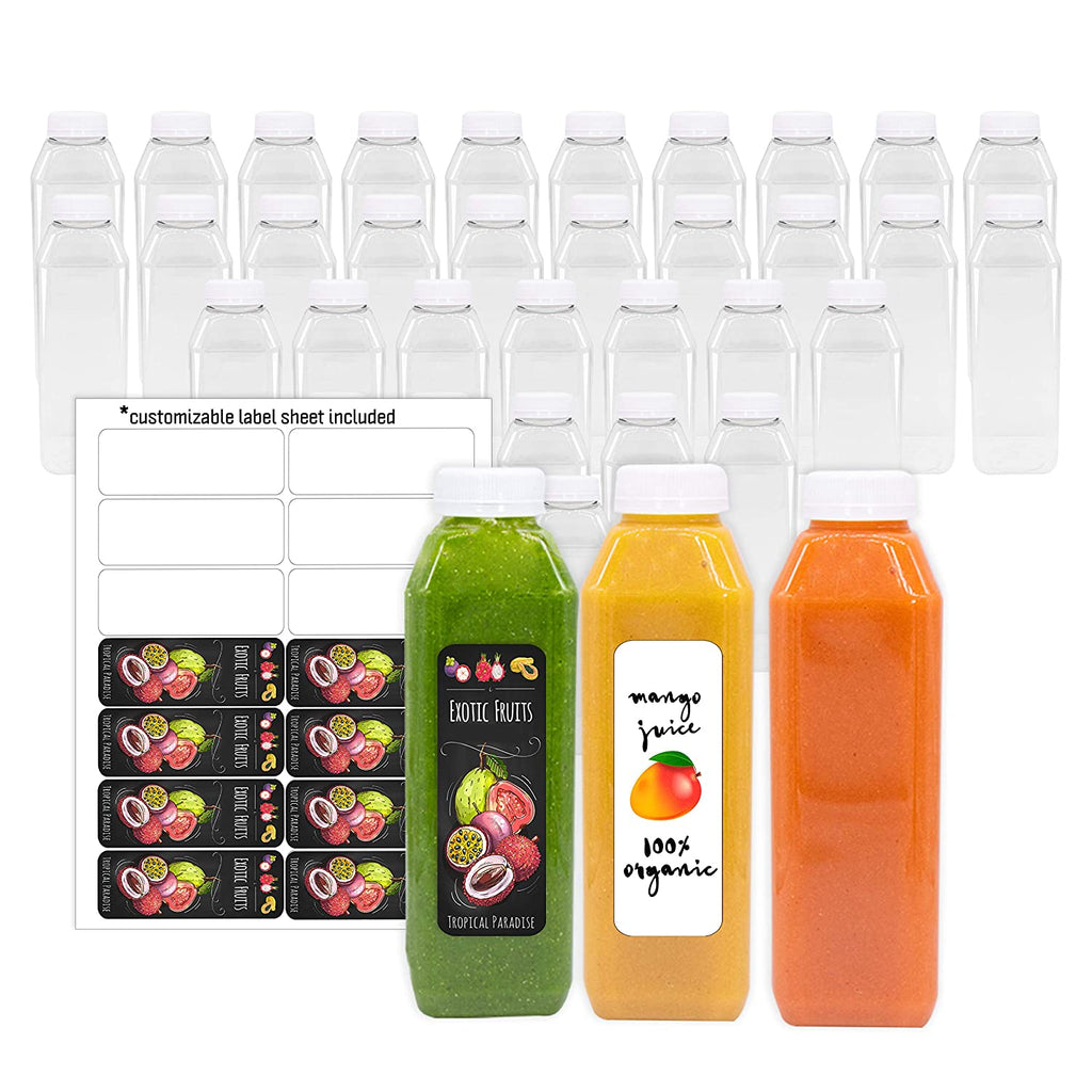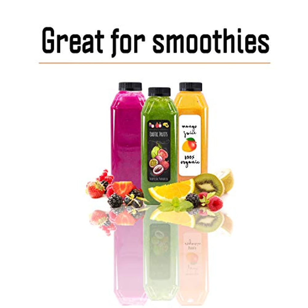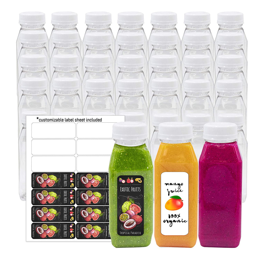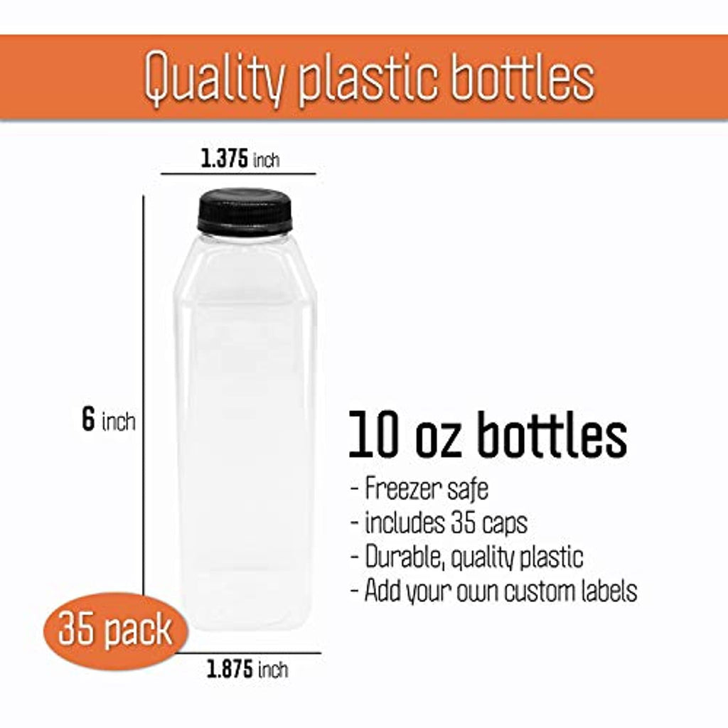• 10 OZ PLASTIC JUICE BOTTLES WITH CAPS ARE PERFECT FOR JUICING AND SMOOTHIES - 35 pack set of empty plastic juice bottles are great for home use or starting your own juicing or smoothie company
