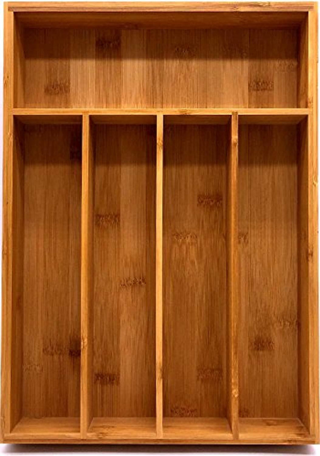 Utopia Kitchen Bamboo Silverware Organizer- 5 Compartments - Bamboo Drawer Organizer Tray - Bamboo Hardware Organizer
