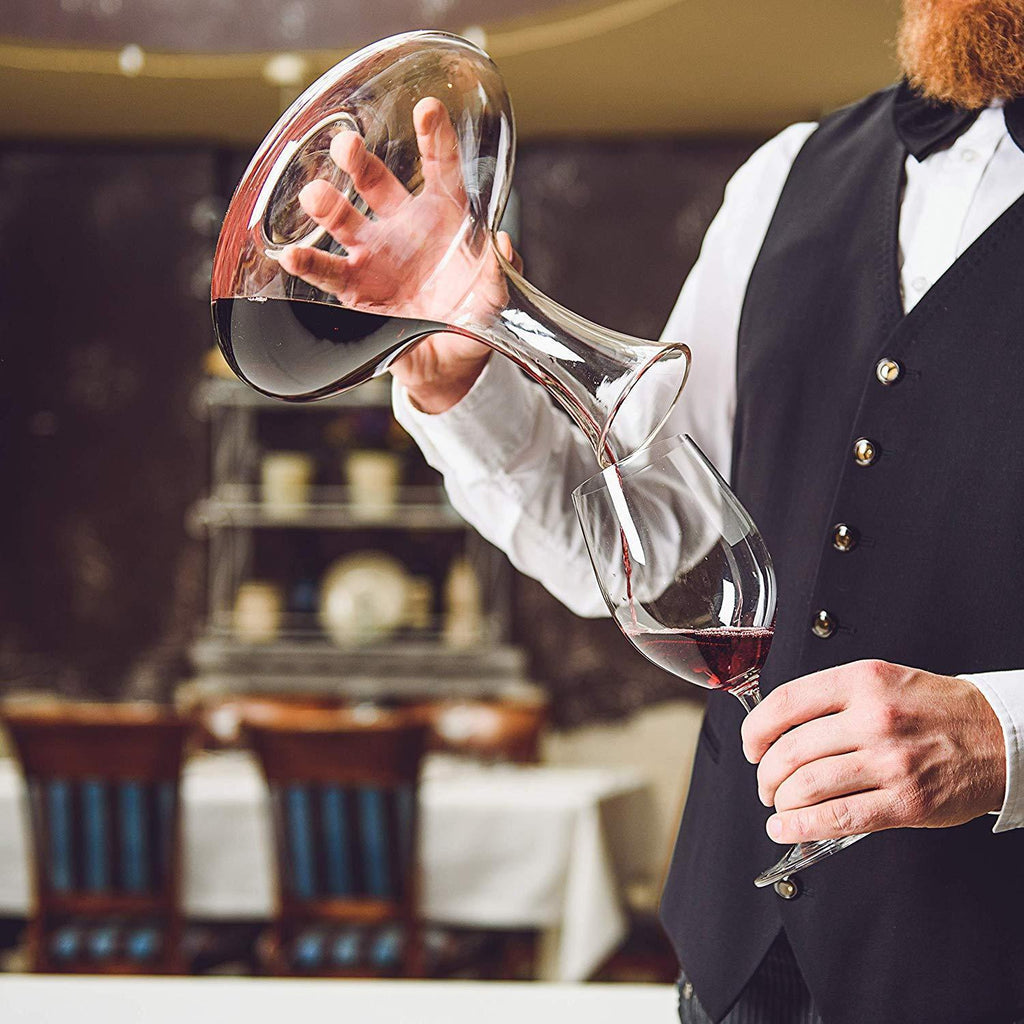 • ☑️ ENJOY A SMOOTHER, MORE INTENSE FLAVOR AND AROMA FROM YOUR WINE. Makes any bottle of wine taste much better by softening the harsh tannins and opening up the hidden flavors. The large 1.75L capacity perfectly aerates a full 750ml bottle by filling to the widest point allowing for maximum aeration and achieving the correct temperature more quickly for a smoother, more enjoyable sensation, especially good for enhancing wine, port or whiskey
