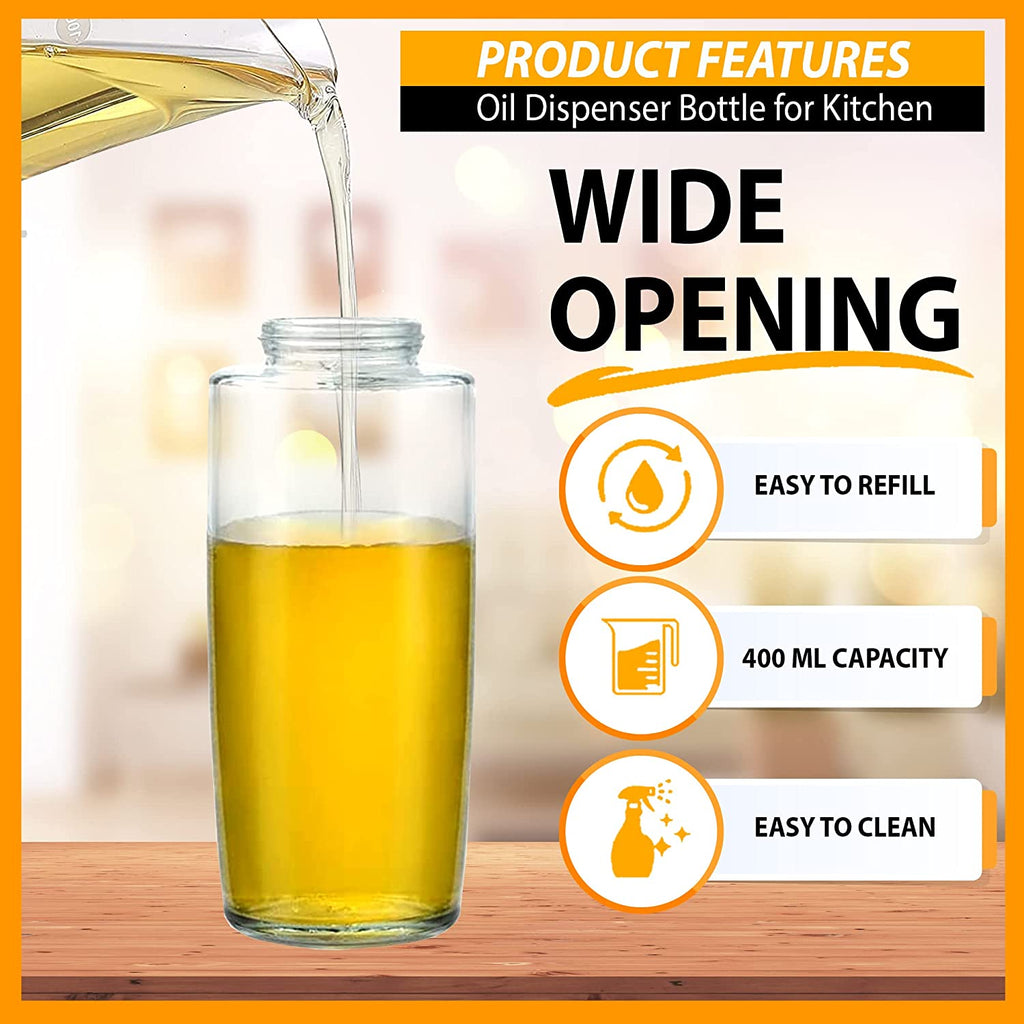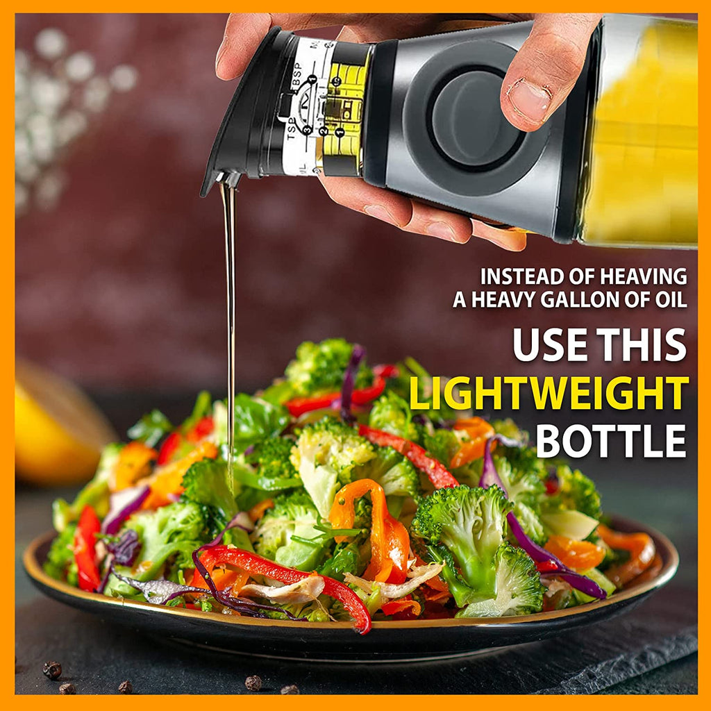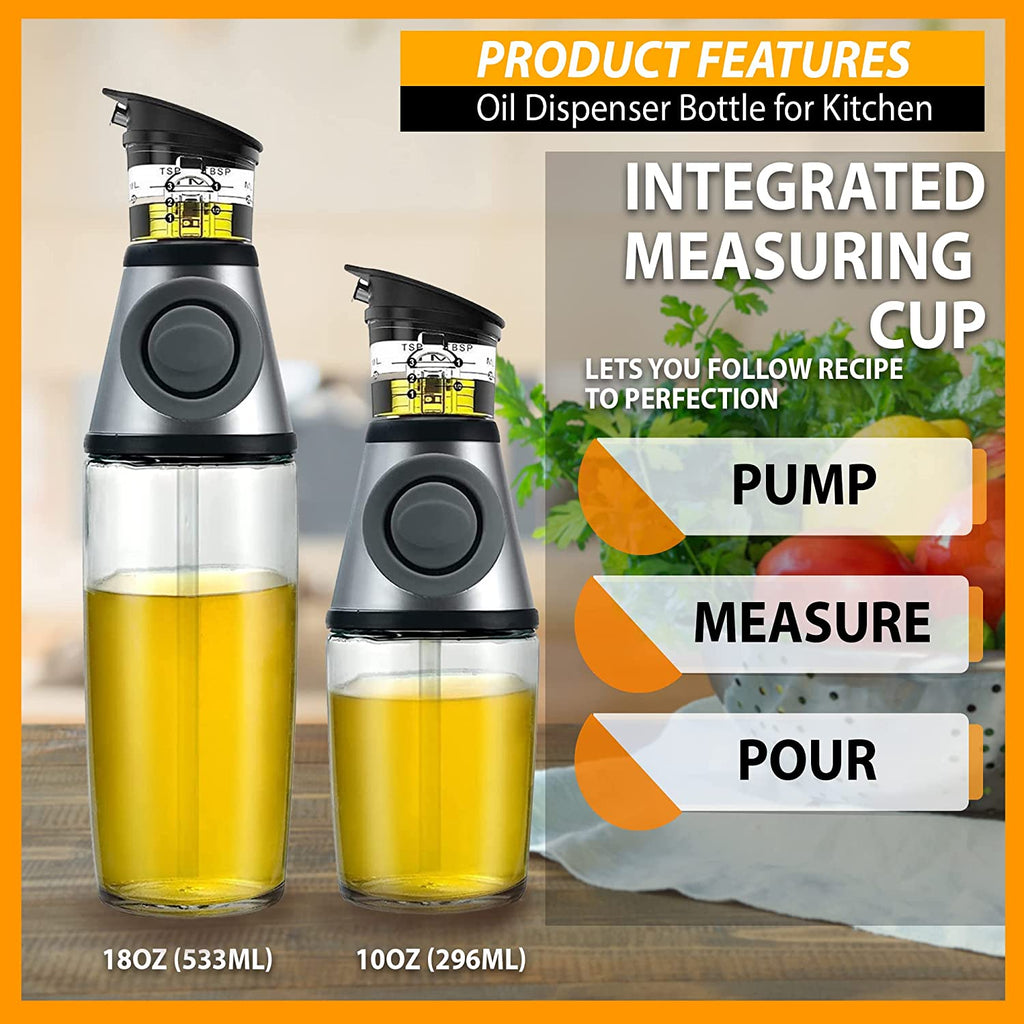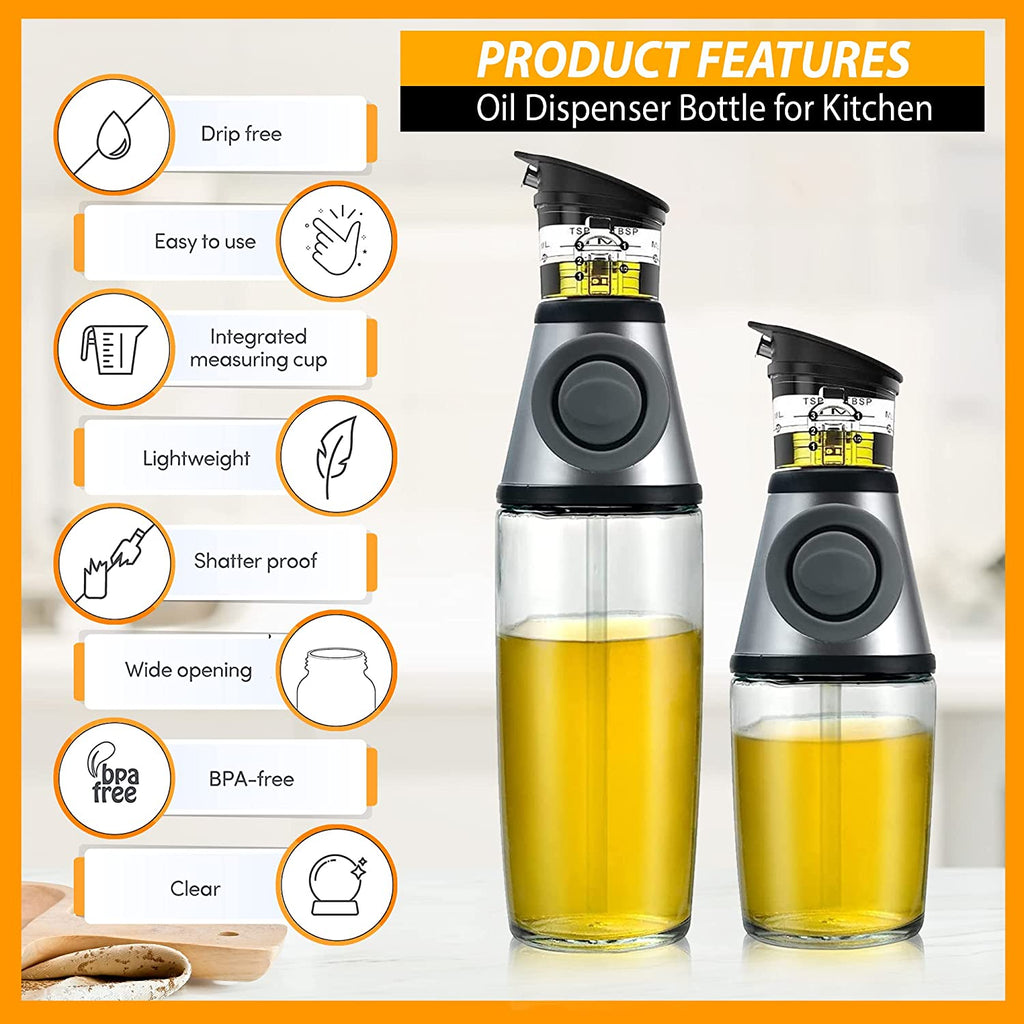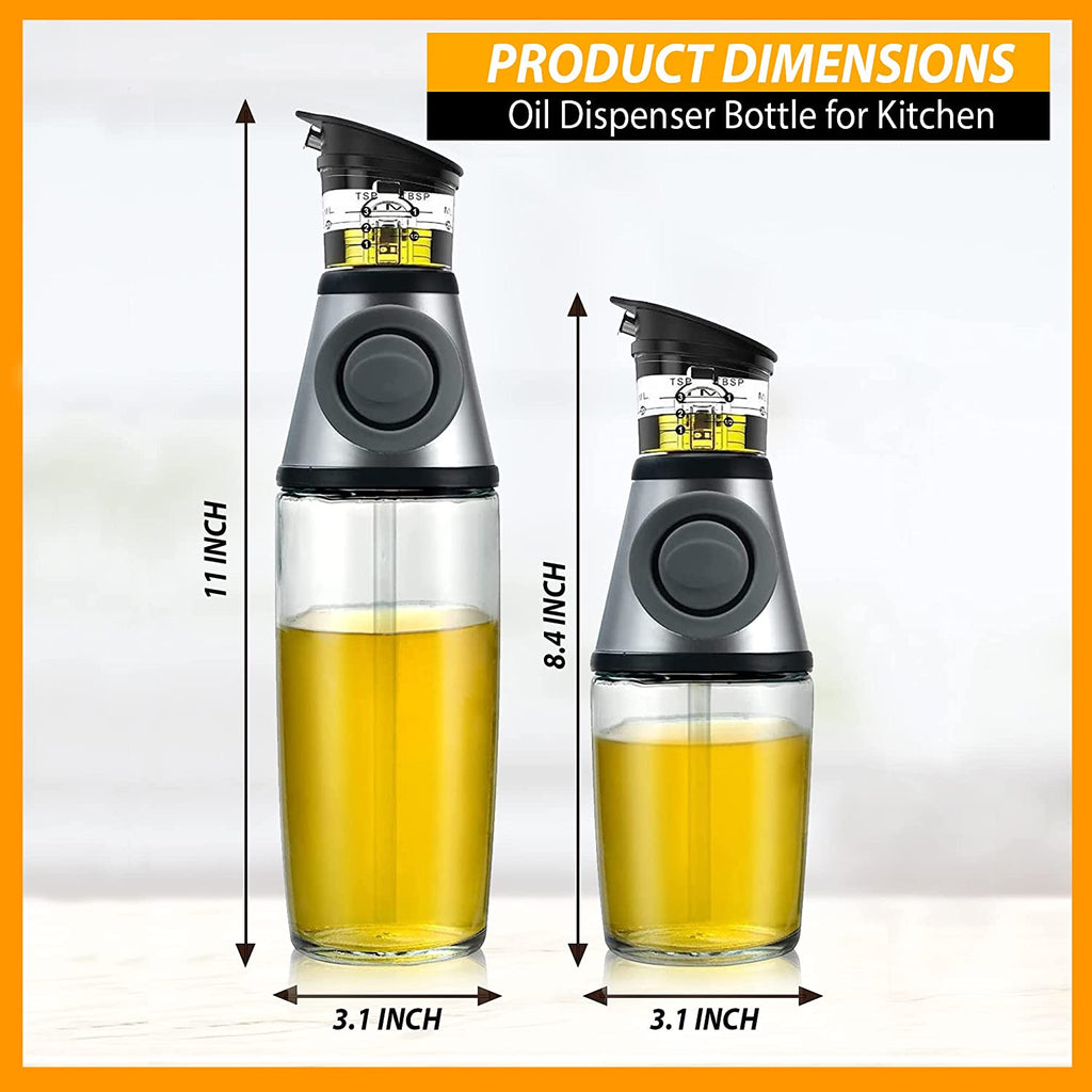 ZALI Oil Dispenser Bottle For Kitchen With Measuring Cups - Oil and Vinegar dispenser Set, Olive Oil Dispenser, Glass oil dispenser, Elagant Design, Easy Refill - Set of 2, 18 OZ & 10 OZ
